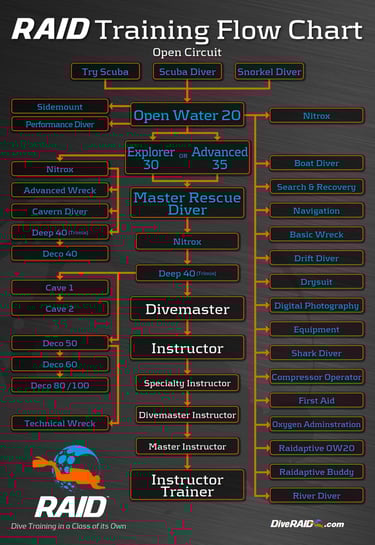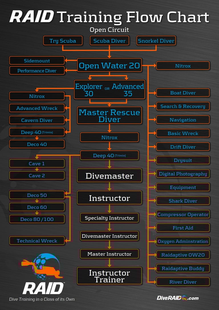Encuentra una lista de cursos de buceo RAID disponibles